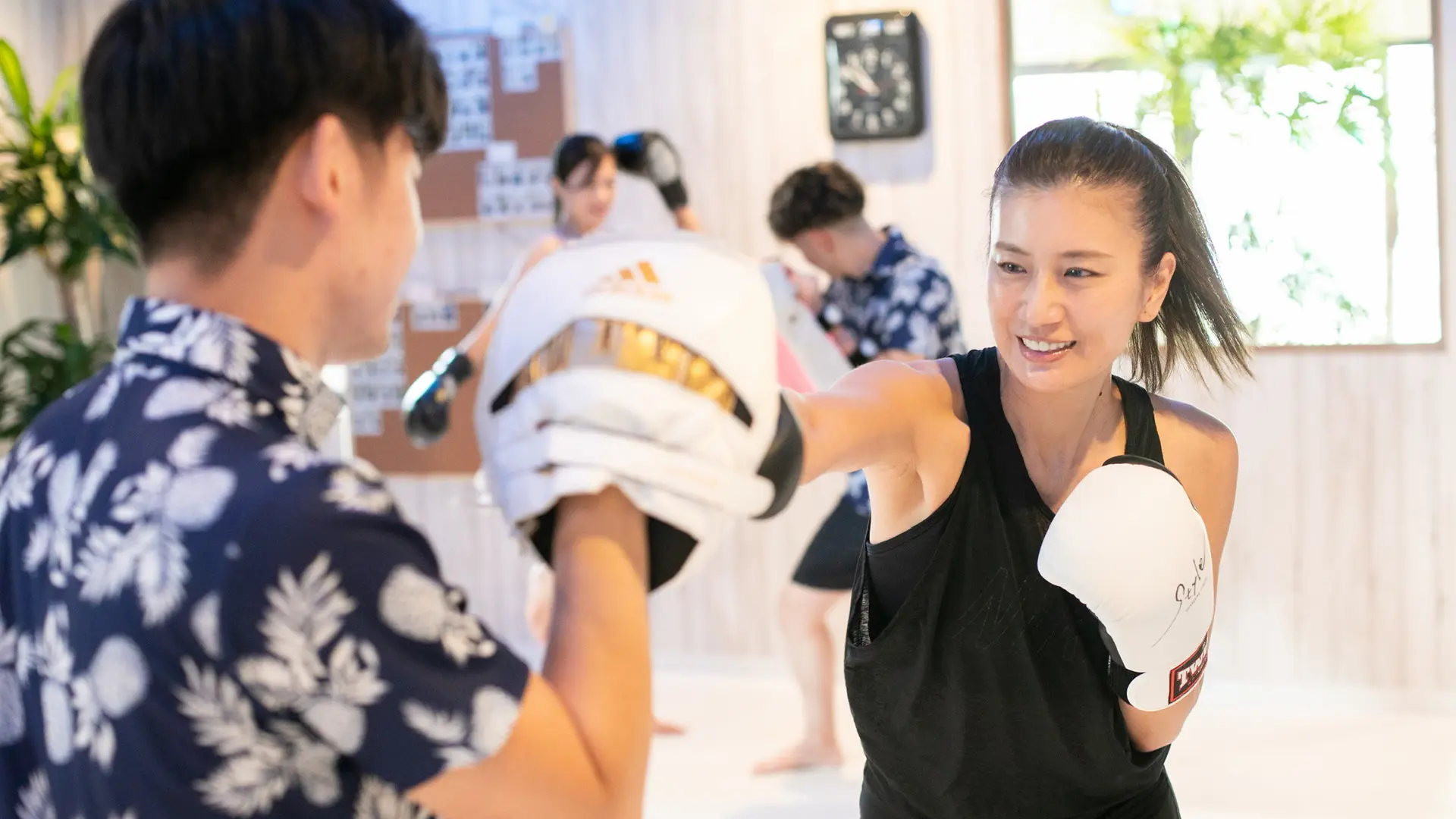 当店のメインであるマンツーマンのミット打ちは、パンチやキックのコンビネーションを打ち込む快感にハマる方が続出!